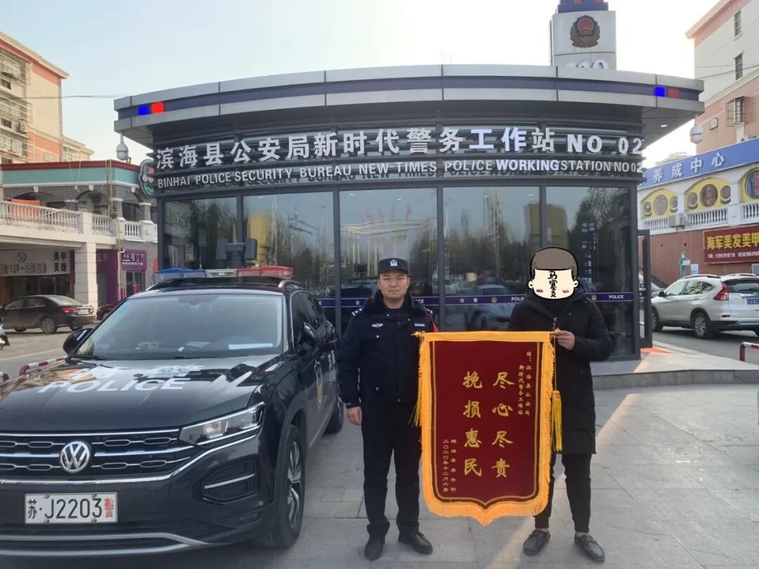12月6日,李先生来到新时代警务工作站给民警张蔚林送来锦旗,感谢他帮助李先生将错转入他人账户的9600元及时找回。