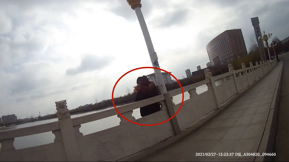 接警后民警顾克海和队员迅速到达现场,发现一身穿黑色外套女子站在南湖桥护栏外,随时都有跳下去的危险。