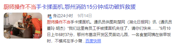8月24日,盐城市大丰区一女子在作业过程中,因处置不当,手卡传送带内。消防员经过近5分钟的紧张救助,女子被救出并及时送往医院治疗。