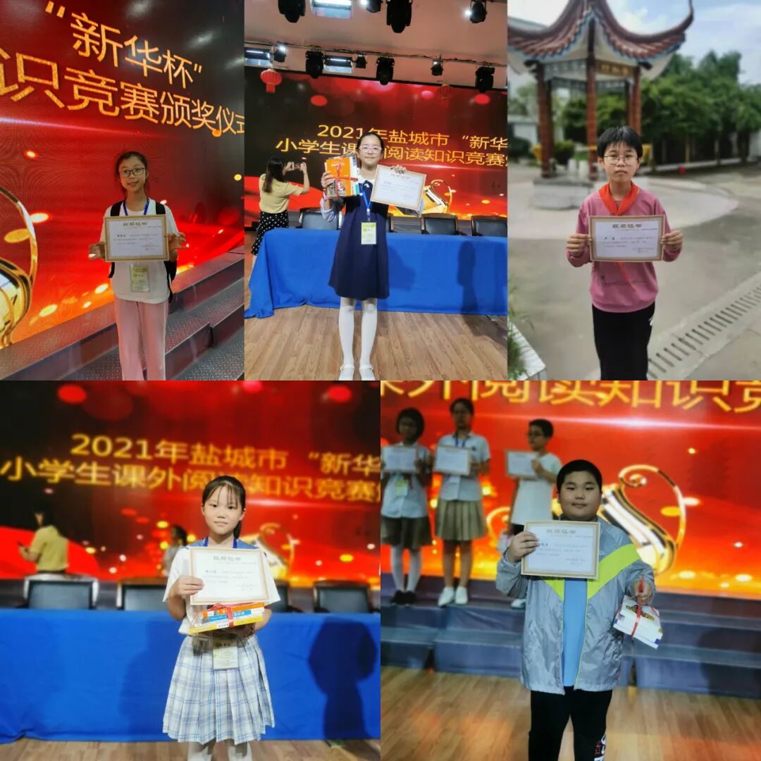 盐城市2021年“新华杯”小学生课外阅读知识现场竞赛9月25日在盐城市新河实验小学举行,我县15名选手参赛,5名选手获得特等奖(全市30人),9人获得一等奖(全市60人),1人获得二等奖(全市103人)。