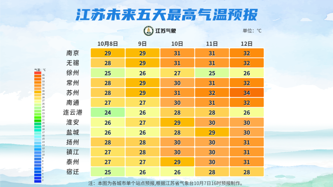 不过到了10日 沿江苏南地区最高气温将重回30℃ 12日气温继续上扬 苏州最高气温将达到34℃