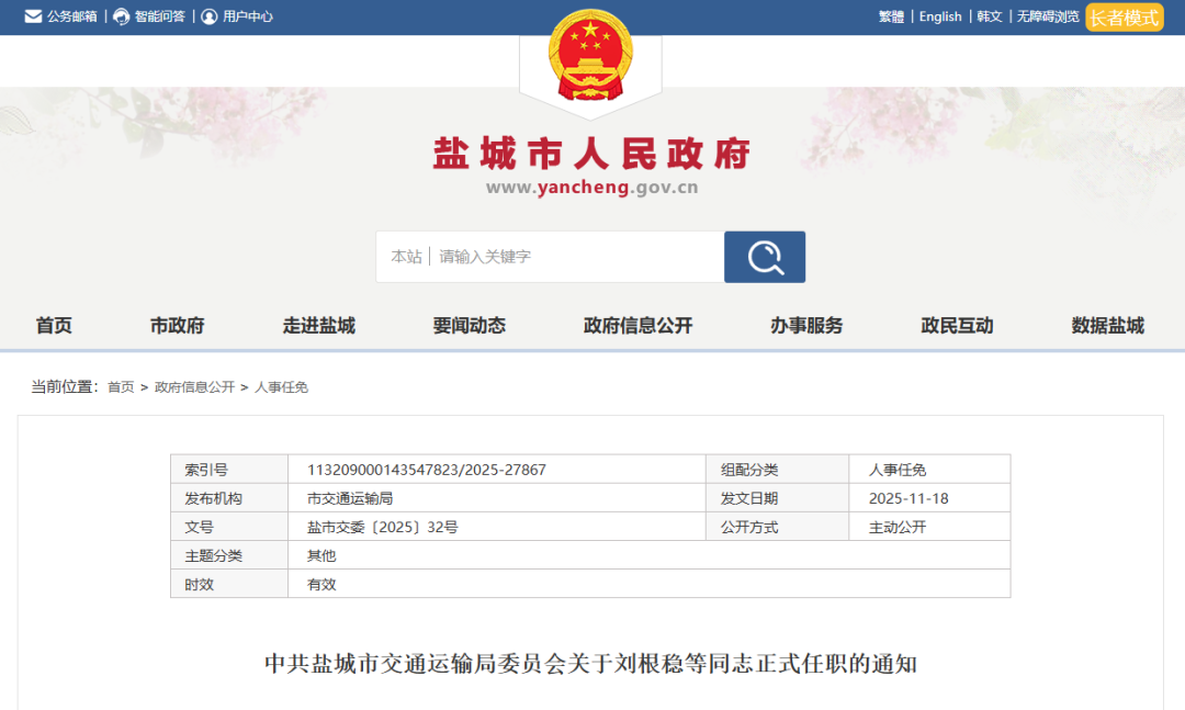 刘洋同志任市交通运输综合行政执法支队道路执法一大队副大队长;