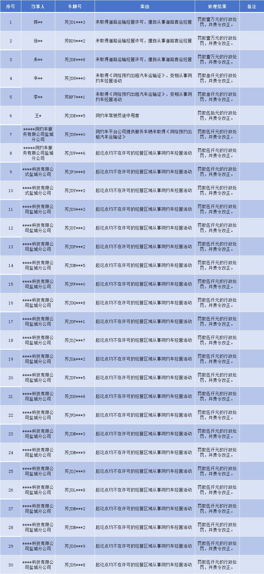 为进一步加强出租客运行业监管,保障乘客合法权益,展示我县城市交通文明形象,县交通执法大队开展了出租客运市场经营秩序整治行动。现决定将整治期间查处的违法违规情况予以公开,不断规范客运市场经营秩序,同时提醒乘客和司机共同维护良好的营运秩序,督促出租车(网约车)经营者及从业人员增强行业自律,提升服务质量。
