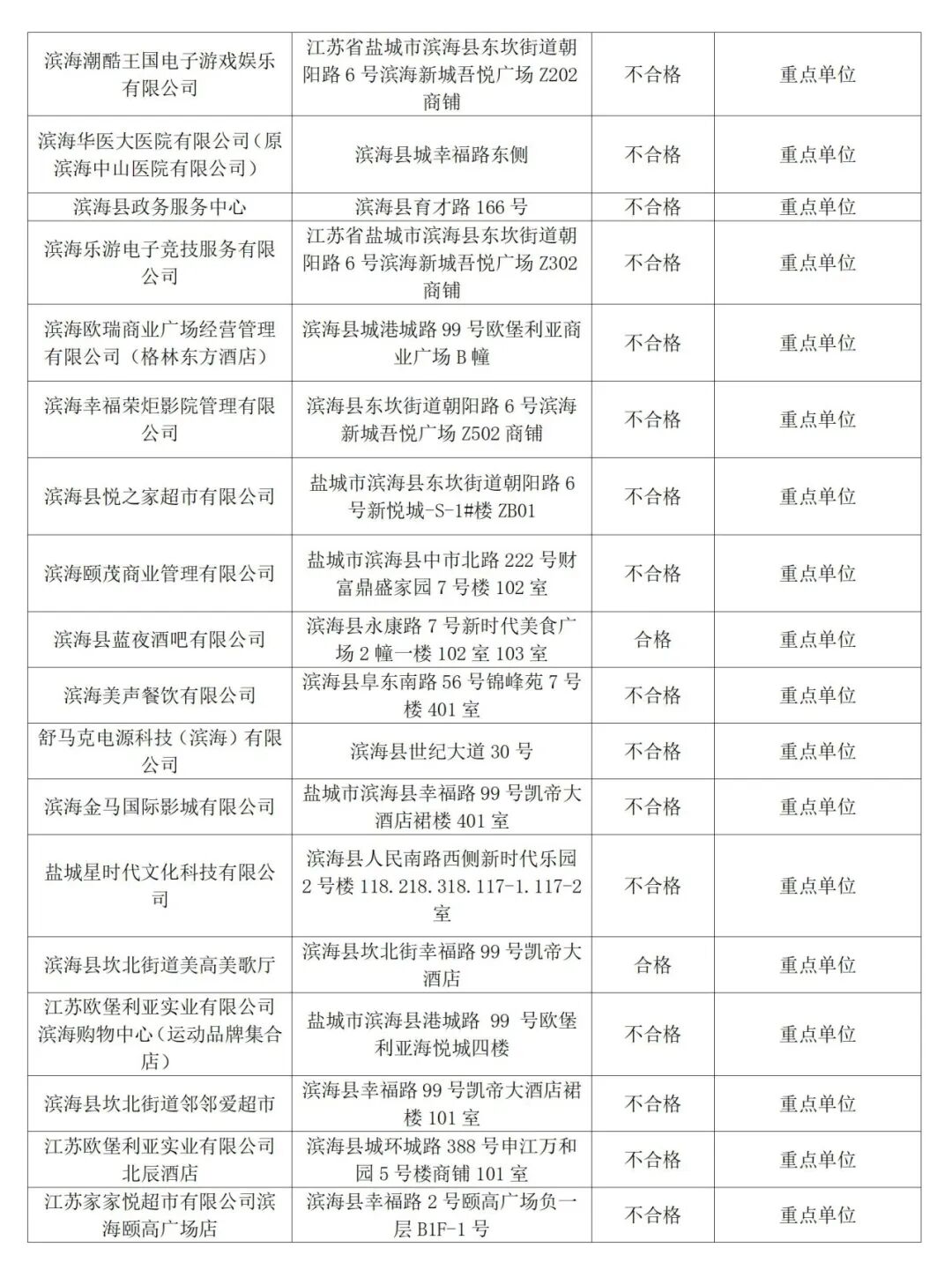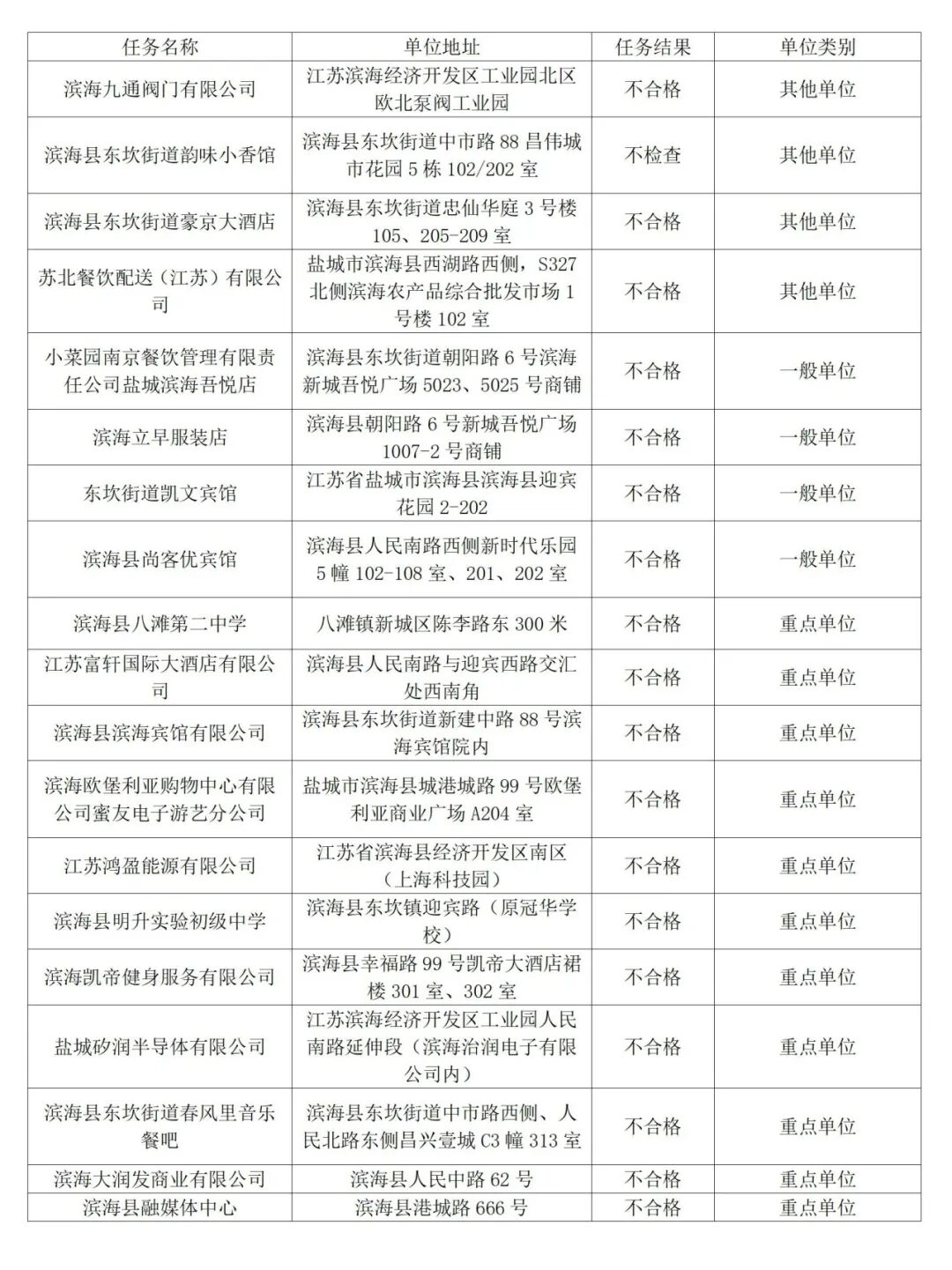 不合格!滨海又一批单位被查…