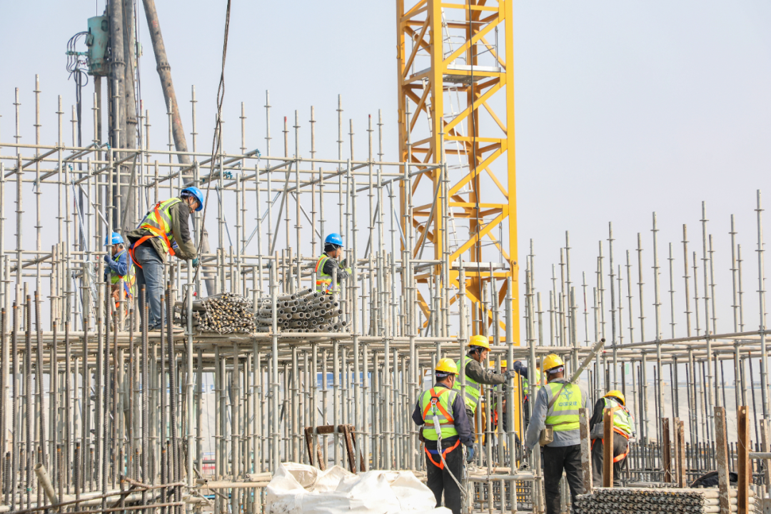一派热火朝天的施工景象