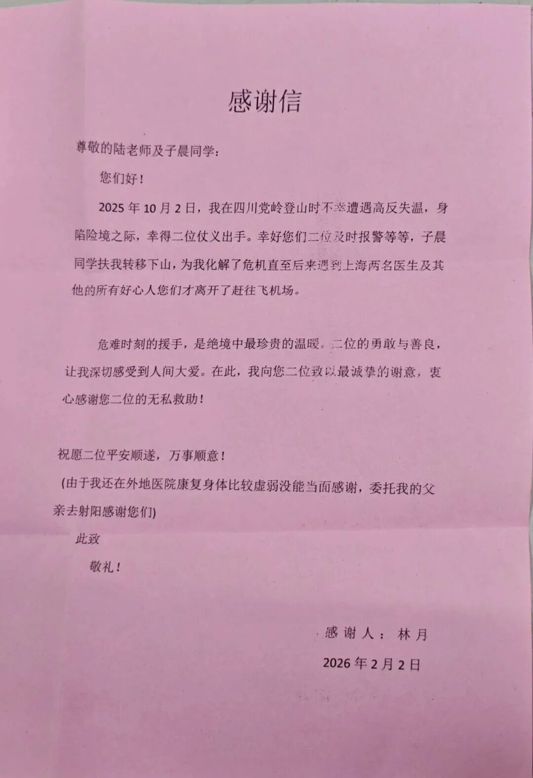 陆容宽返校后,对救人一事只字未提。直到2026年2月3日,林月父亲专程从东台赶到学校赠送锦旗,他的义举才被师生知晓。面对赞誉,陆容宽平静地说:“有人遇险伸把手,这是我应该做的。”