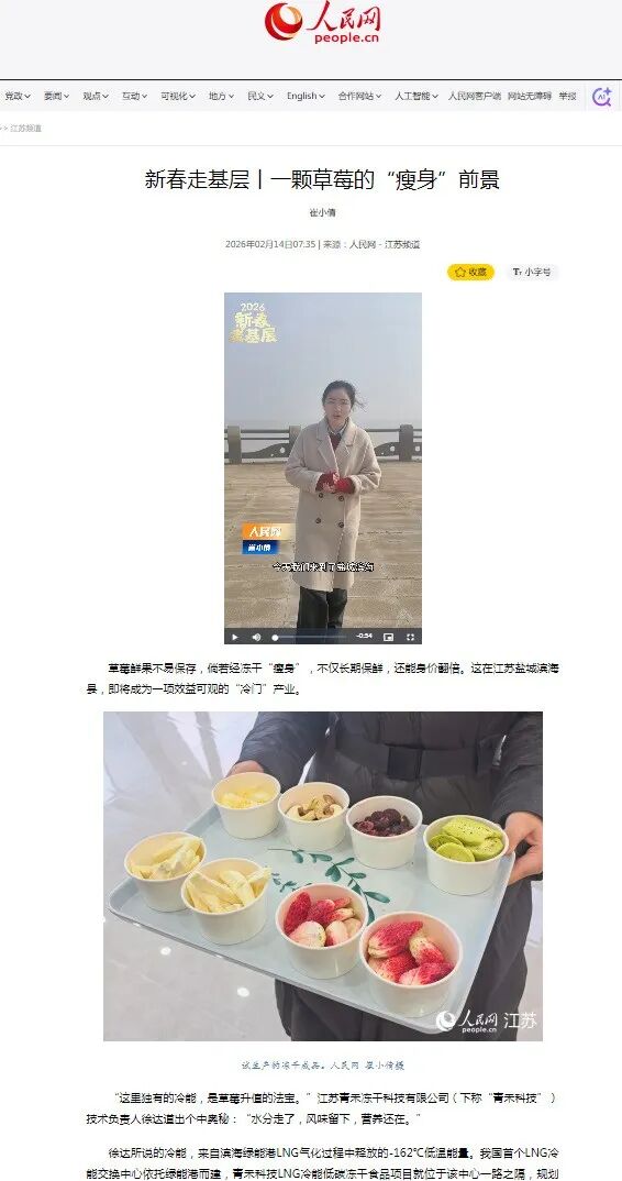 02  “人民网”总网首页平台2月14日“人民网”总网首页平台关注滨海《新春走基层丨一颗草莓的“瘦身”前景》以“图、文、视频Vlog”的报道形式报道我县冷能综合利用的绿色低碳发展新实践、新举措(人民日报客户端、“人民网”公众号同步发布)
