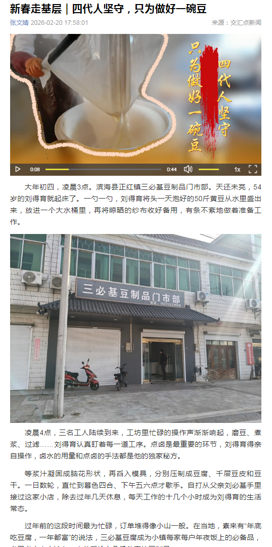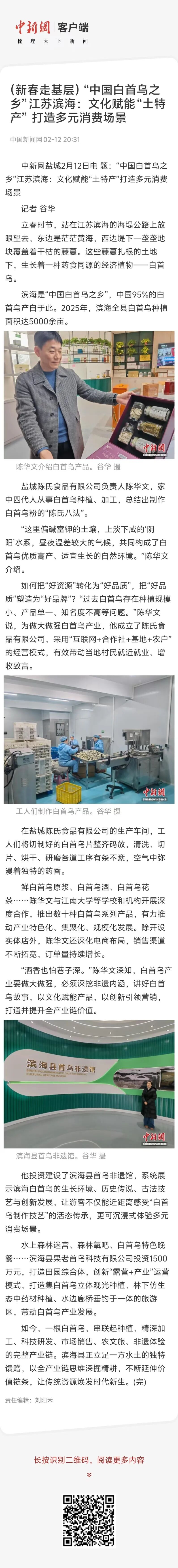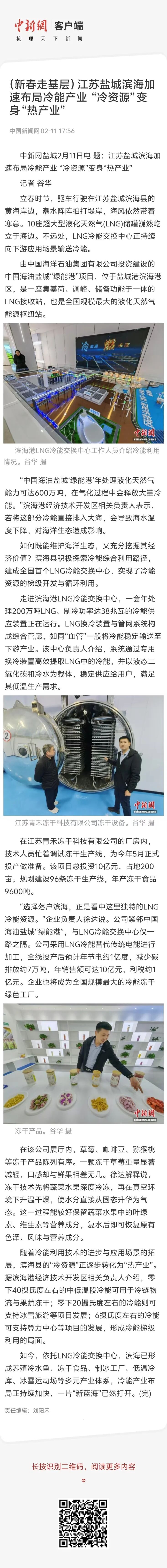 03  中国新闻网2月11、12日“中国新闻网”“新春走基层”专栏连续三条报道滨海加快建设“电力粮仓” 做好春节生产服务保障加速布局冷能产业 “冷资源”变身“热产业”文化赋能“土特产” 打造多元消费场景
