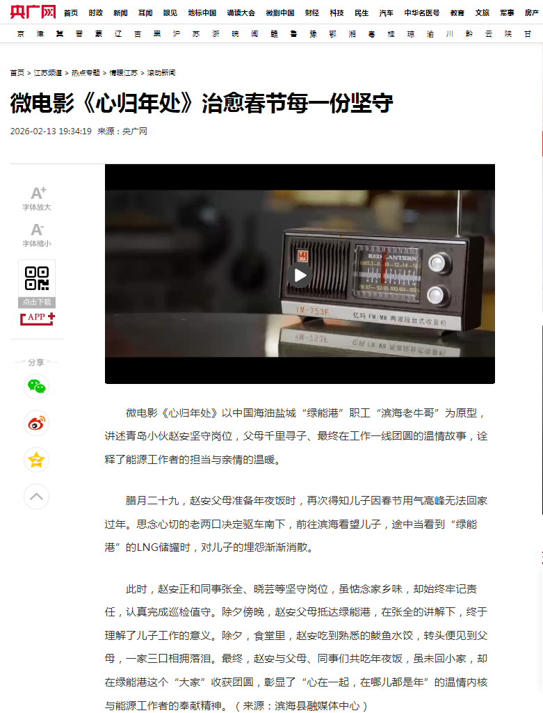 01 央视新闻 2月20日大年初四央视《今日环球》聚焦盐城滨海重大能源项目建设春节“不打烊”