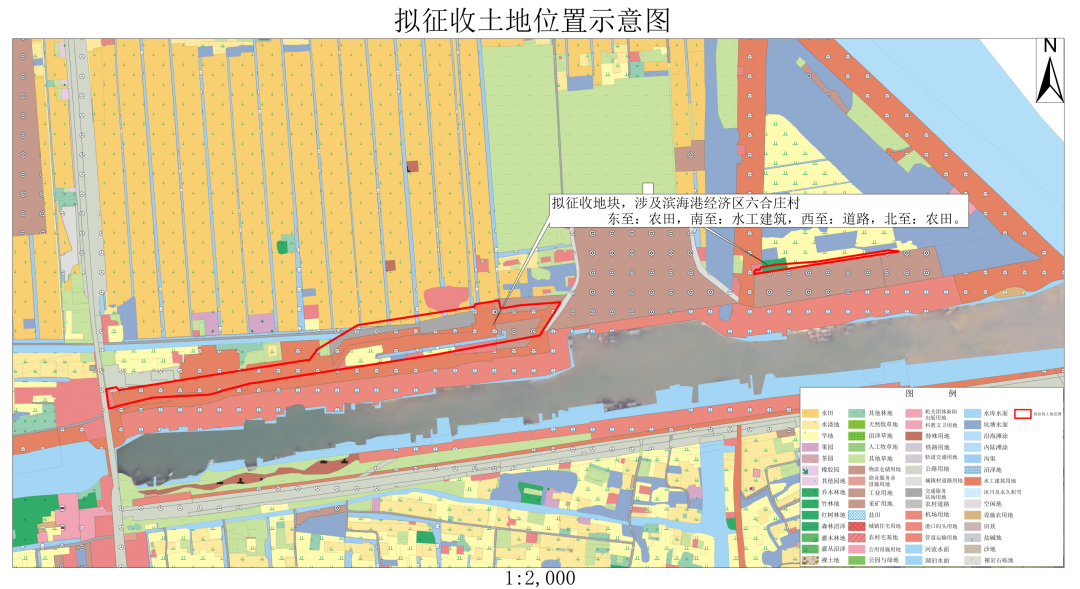 本次拟征收土地位于滨海县滨海港经济区六合庄村、六合庄村一组、六合庄村二组、六合庄村三组、六合庄村五组、六合庄村七组、六合庄村八组范围内。拟征收土地位置详见附图。