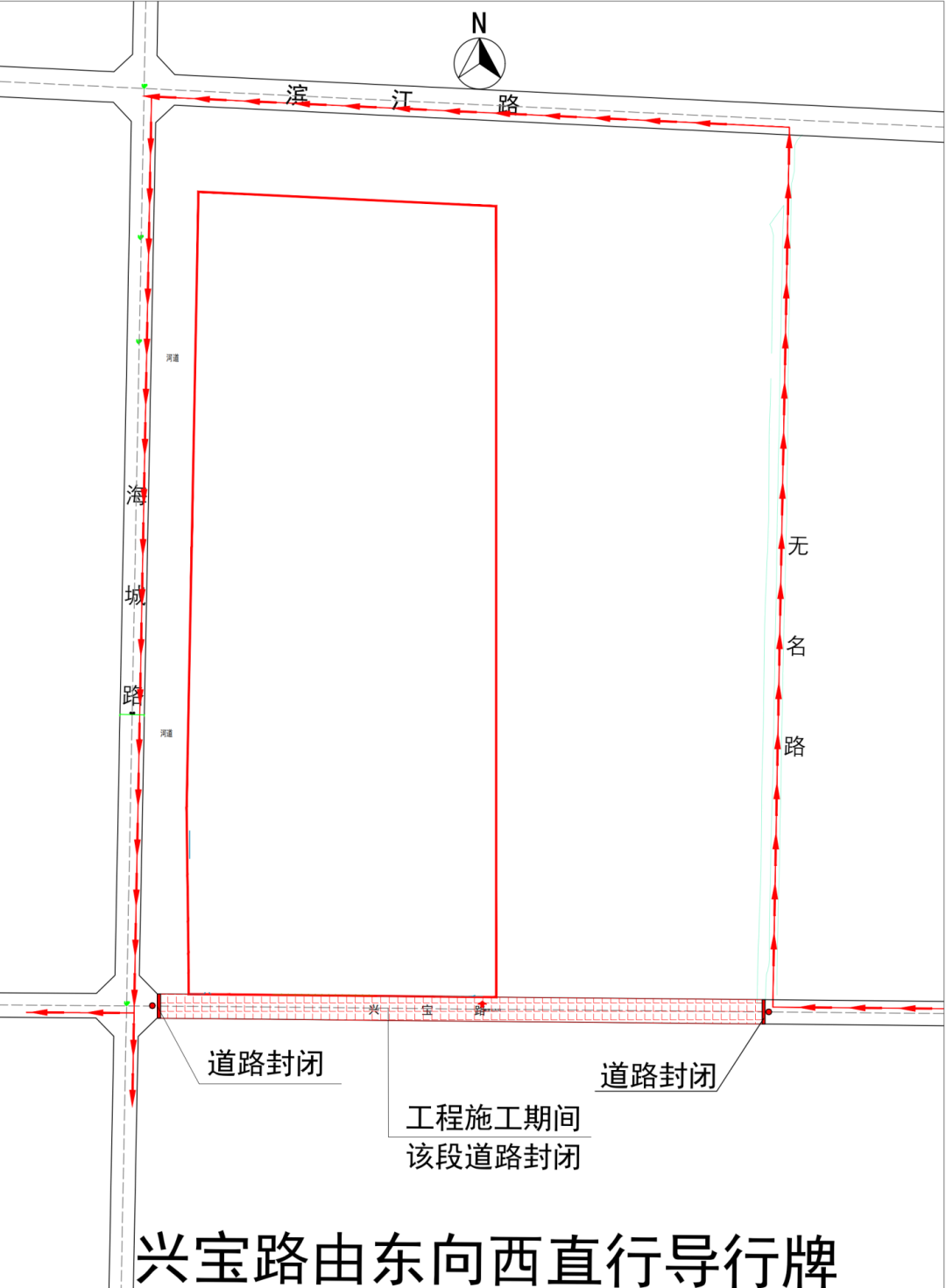 滨海港经济区兴宝路(海城路-南北向无名路)全幅封闭。