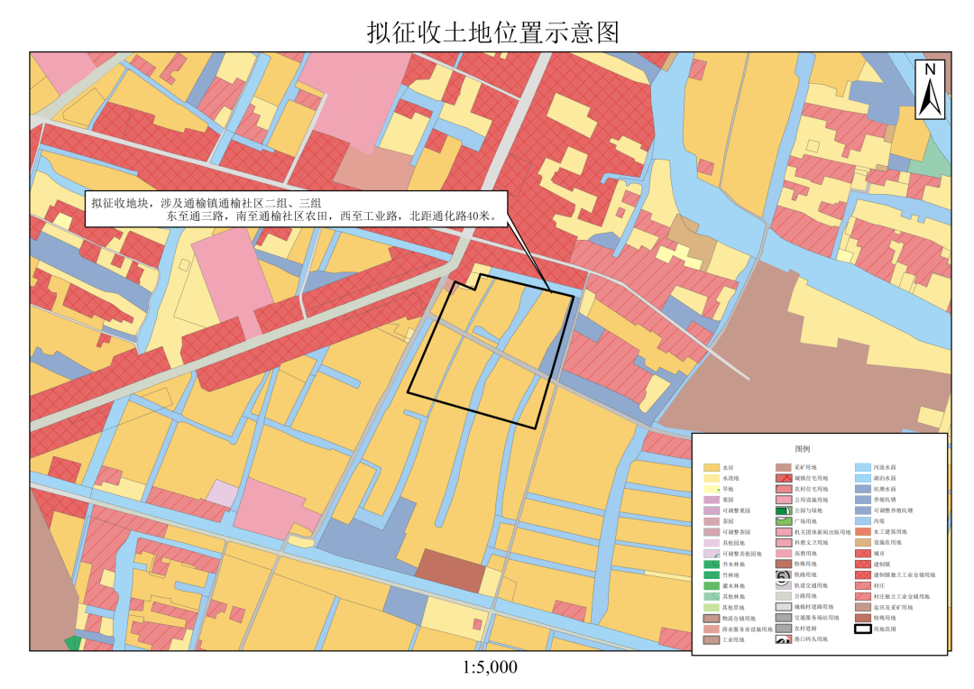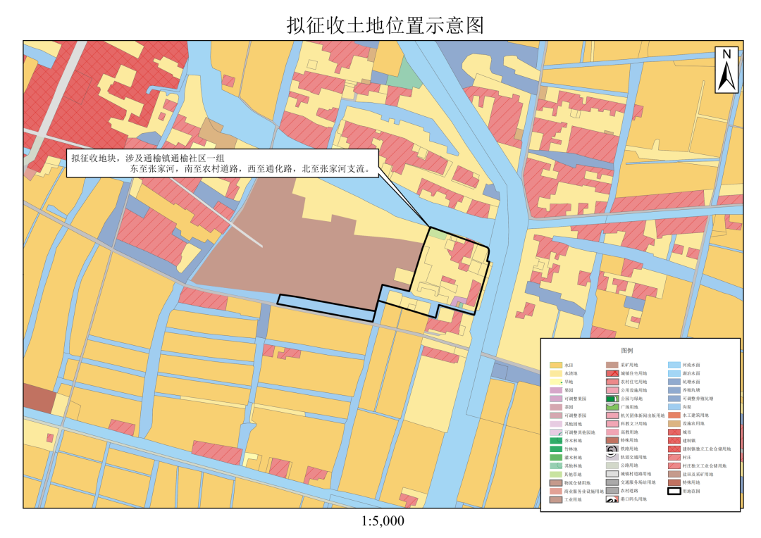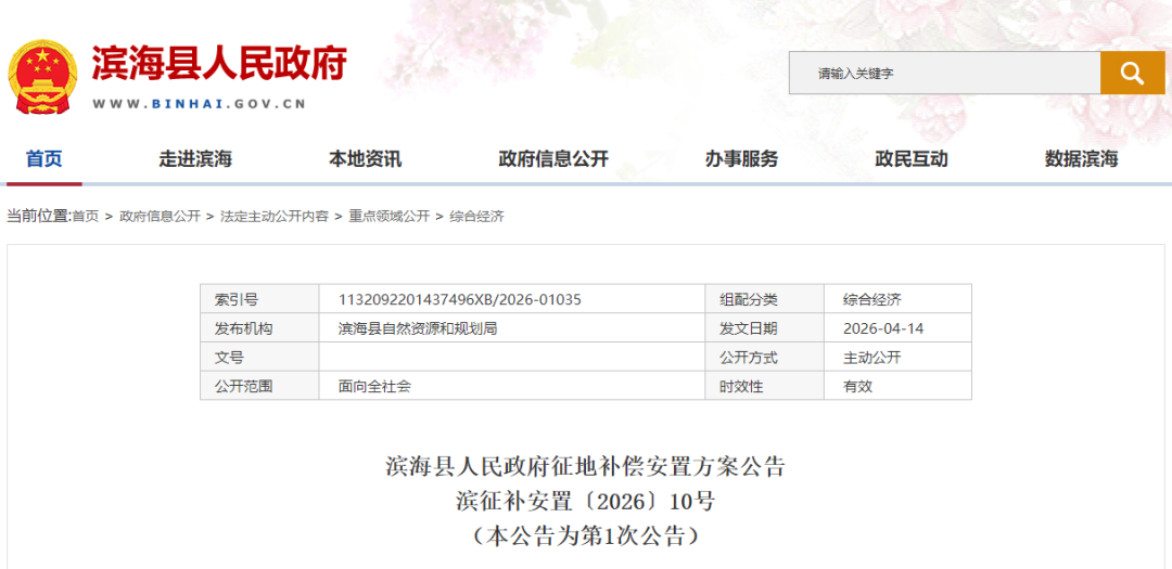 根据《中华人民共和国土地管理法》第四十七条、第四十八条,《中华人民共和国土地管理法实施条例》第二十七条、第二十八条,《江苏省土地管理条例》第三十七条的规定,依据滨拟征告〔2025〕23号开展的拟征收土地现状调查和社会稳定风险评估结果,现将拟定的征收土地补偿安置方案有关事项公告如下: 一、征收范围 本次拟征收土地位于滨海县通榆镇通榆社区居委会一组范围内。拟征收土地位置详见附图。  实际征收土地以最终批准文件为准。 二、土地现状 根据拟征收土地现状调查结果,本次拟征收土地现状如下: 1. 拟征收滨海县通榆镇通榆社区居委会一组集体所有土地2.5515公顷,其中农用地2.4050公顷(含耕地1.7049公顷)、建设用地0.1465公顷。 三、征收目的 根据《中华人民共和国土地管理法》第四十五条的规定,本次征收土地目的为由政府组织实施的科技、教育、文化、卫生、体育、生态环境和资源保护、防灾减灾、文物保护、社区综合服务、社会福利、市政公用、优抚安置、英烈保护等公共事业需要用地的。 四、补偿方式与标准 (一)土地补偿费和安置补助费标准 征地补偿标准暂参照现行县执行标准测算,具体按照获批时点的县执行标准执行,现按《滨海县人民政府关于重新公布滨海县征地区片综合地价标准的通知》(滨政发〔2023〕86号)的规定执行。具体补偿方式为货币补偿,标准为:区片2【五汛镇、蔡桥镇、正红镇、通榆镇、天场镇(包括现代农业园)、界牌镇、陈涛镇、八巨镇、八滩镇、滨海港经济区、滨海港镇、滨淮镇】,区片综合地价40000元/亩(农用地土地补偿费20000元/亩、安置补助费20000元/人),建设用地土地补偿费40000元/亩、未利用地土地补偿费28000元/亩。 (二)青苗补偿标准 《盐城市人民政府关于公布盐城市征地涉及地上附着物和青苗等补偿标准的通知》(盐政发〔2021〕12号)的规定执行。 (三)地上附着物补偿标准 地上附着物补偿按《盐城市人民政府关于公布盐城市征地涉及地上附着物和青苗等补偿标准的通知》(盐政发〔2021〕12号)的规定执行。 五、安置对象、方式及社会保障 本次征收土地涉及被征地农民的安置和社会保障按照《省政府关于印发江苏省被征地农民社会保障办法的通知》(苏政发〔2021〕87号)和《盐城市人民政府关于印发盐城市被征地农民社会保障实施办法的通知》(盐政规发〔2022〕4号)的规定执行。不满16周岁的安置人员不作为被征地农民参加城乡社会保障,其本人的安置补助费由设区的市、县(市、区)人民政府按规定足额支付。 六、其他事项 1.本公告在滨海县人民政府门户网站(http://www.binhai.gov.cn/)和拟征收土地涉及的农村集体经济组织所在镇(街道)和村、村民小组范围内进行公告,听取被征地的农村集体经济组织及其成员、村民委员会和其它利害关系人的意见。本公告公示期为30天,自2026年4月14日至2026年5月15日。 2. 对本征地补偿安置方案有异议的,应在本公告发布之日起30日内(截止2026年5月15日)提出,实名签字或书面盖章意见最迟应于公告结束后5个工作日内提交。提交地址为:滨海县育才西路586号(联系人:周胜阳;电话:0515-89129859;邮编:224500)。以邮寄方式寄送书面意见的以寄出邮戳日期为准。书面意见应明确、具体,认为本征地补偿安置方案不符合法律、法规规定,应予以明示。在规定时间内未递交书面意见的,视为无异议。 3.如过半数被征地的农村集体经济组织成员认为本征地补偿安置方案不符合法律、法规规定的,或者虽未过半数但有部分被征地的农村集体经济组织成员认为征地补偿安置方案不符合法律、法规规定,本级人民政府认为确有必要的,滨海县人民政府将依法组织听证,相关事项另行通知。 4.拟征收土地范围内的土地所有权人、使用权人应当在本公告规定期限内即2026年4月14日至2026年5月15日,持不动产权属证明材料至所在镇(街道)、村(居)办理补偿登记(联系人:周胜阳;电话:0515-89129859),请相互转告。土地所有权人、使用权人如未按期办理补偿登记的,其补偿内容以土地现状调查结果为准。 特此公告。 滨海县人民政府 2026年4月10日  根据《中华人民共和国土地管理法》第四十七条、第四十八条,《中华人民共和国土地管理法实施条例》第二十七条、第二十八条,《江苏省土地管理条例》第三十七条的规定,依据滨拟征告〔2025〕24号开展的拟征收土地现状调查和社会稳定风险评估结果,现将拟定的征收土地补偿安置方案有关事项公告如下: 一、征收范围 本次拟征收土地位于滨海县通榆镇通榆社区居委会二、三组范围内。拟征收土地位置详见附图。  实际征收土地以最终批准文件为准。 二、土地现状 根据拟征收土地现状调查结果,本次拟征收土地现状如下: 1. 拟征收滨海县通榆镇通榆社区居委会二组集体所有土地0.2872公顷,其中农用地0.2872公顷(含耕地0.1697公顷); 2. 拟征收滨海县通榆镇通榆社区居委会三组集体所有土地3.5548公顷,其中农用地3.5548公顷(含耕地2.9260公顷)。 三、征收目的 根据《中华人民共和国土地管理法》第四十五条的规定,本次征收土地目的为由政府组织实施的科技、教育、文化、卫生、体育、生态环境和资源保护、防灾减灾、文物保护、社区综合服务、社会福利、市政公用、优抚安置、英烈保护等公共事业需要用地的。 四、补偿方式与标准 (一)土地补偿费