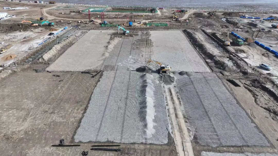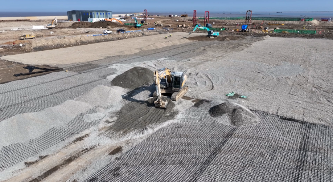 截至目前 项目陆域部分地基处理 及配套设施施工持续提速 总体形象进度已完成45% 水域部分已启动陆上灌注桩施工 同步推进纳泥区围堰土工膜铺设 与排泥管线布设工作 整体进度完成3% 为后续码头主体结构施工 筑牢了坚实基础
